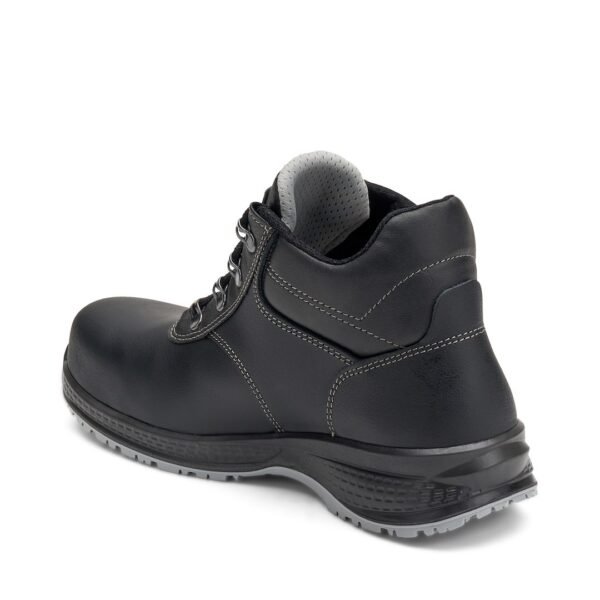 Scarpa antinfortunistica alta, in pelle groppone WRU spessore 1,8-2,0 mm. Fodera in tessuto traspirante e resistente all' abrasione. Calzatura con inserto in tessuto rifrangente. Linguetta morbida, foderata e imbottita. La calzatura soddisfa i requisiti di resistenza allo scivolamento per lavori su tetti inclinati secondo la UNI 11583:2015 PUNTALE 200J composito a base polimerica atermico a norma EN 12568 LAMINA tessuto composito antiperforazione flessibile a norma EN 12568 SUOLA KUBE poliuretano bidensità antistatica, resistente all' idrolisi ISO 5423:92, agli idrocarburi e all' abrasione, antishock e antiscivolo SRC SOLETTA 4001, Soletta comfort, traspirante, estraibile, anatomica, assorbente, antistatica ed antibatterica. Resistenza elettrica: dai valori riscontrati la soletta risulta essere ESD